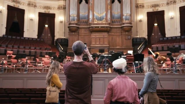 Vooraf kregen de kunstenaars een unieke rondleiding, waarbij ze de verborgen plekken van Het Concertgebouw ontdekten, en ze de anekdotes uit de geschiedenis van het magistrale gebouw te horen kregen.